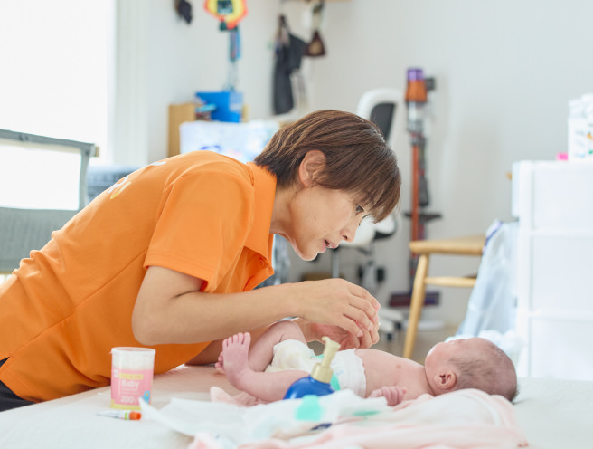 2020年、にこりは北九州市で新たに「産後ケアステーションにこり」を始めました。現在は子育て家庭の訪問看護(おやこの訪問看護)とともに、地域で子育てするお母さんたちをサポートし、産後うつや乳児虐待を防ぐための活動を行っています。