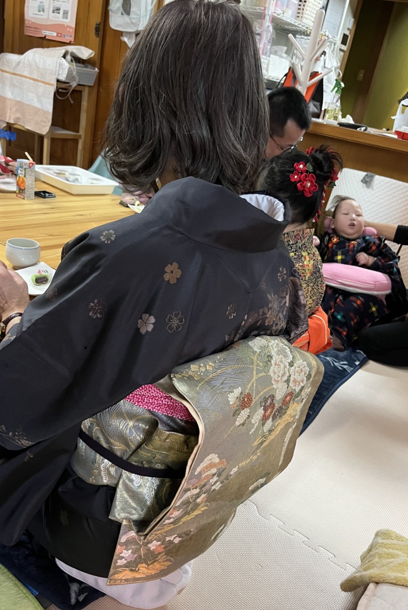 子どもたちは色とりどりの着物を身にまとい、おままごとをしたり、お友達と遊んだり、ごろんとねんねしていたり。のびのびとした時間が流れていました。