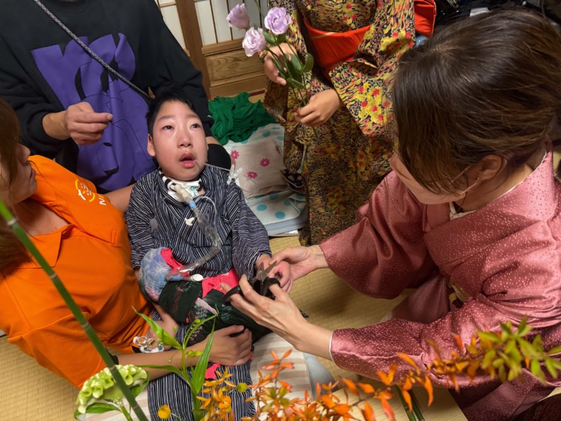 午後のゆるやかな風が吹く中、にこり八幡の事業所で「Kimono de Nicori 〜着物といけばなの会〜」を開催しました。